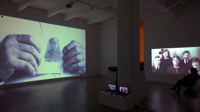 Throughout 2013-15, Eyesociation worked with Age Exchange, across London, to record interviews with members of the London public. The focus was on how families were affected by the conflict then, and across subsequent generations. People shared immensely moving personal histories, passed down from within their family. Together, Age Exchange and Eyesociation worked in partnership with many fine organisations to carry out open days, recording 130 interviews, as well as digitalising 5300 personal letters, photographs and period artefacts, brought by interviewees to the activity. This unparalleled collection of Londoners' family First World War histories will rest with the international archive Europeana 1914-1918, for the learning of future generations. These personal stories of parents, grandparents, uncles and aunts from across the Home Front, the battlefields, skies and the sea, inspired our dual-screen installation, as well as a new play.